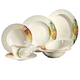 - bestehend aus: 6x Speiseteller 28 cm, 6x Suppenteller 23 cm, 1x Sauciere 0,60 l mit Unterteller 22,5 cm, 1x Schüssel 23 cm, 1x Schüssel 26 cm, 1x Platte oval 33 cm