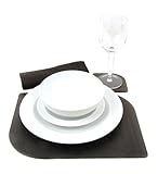- Tischset (26 x 35 cm) und Untersetzer (11 x 11 cm) aus schwarzem Kunstleder; hitzebeständig bis 65° C